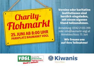 Am 25.06.2023 findet vor dem Baumarkt Vogl in Rosental der 1. Charity-Flohmarkt des Kiwanis Clubs Styria West statt.